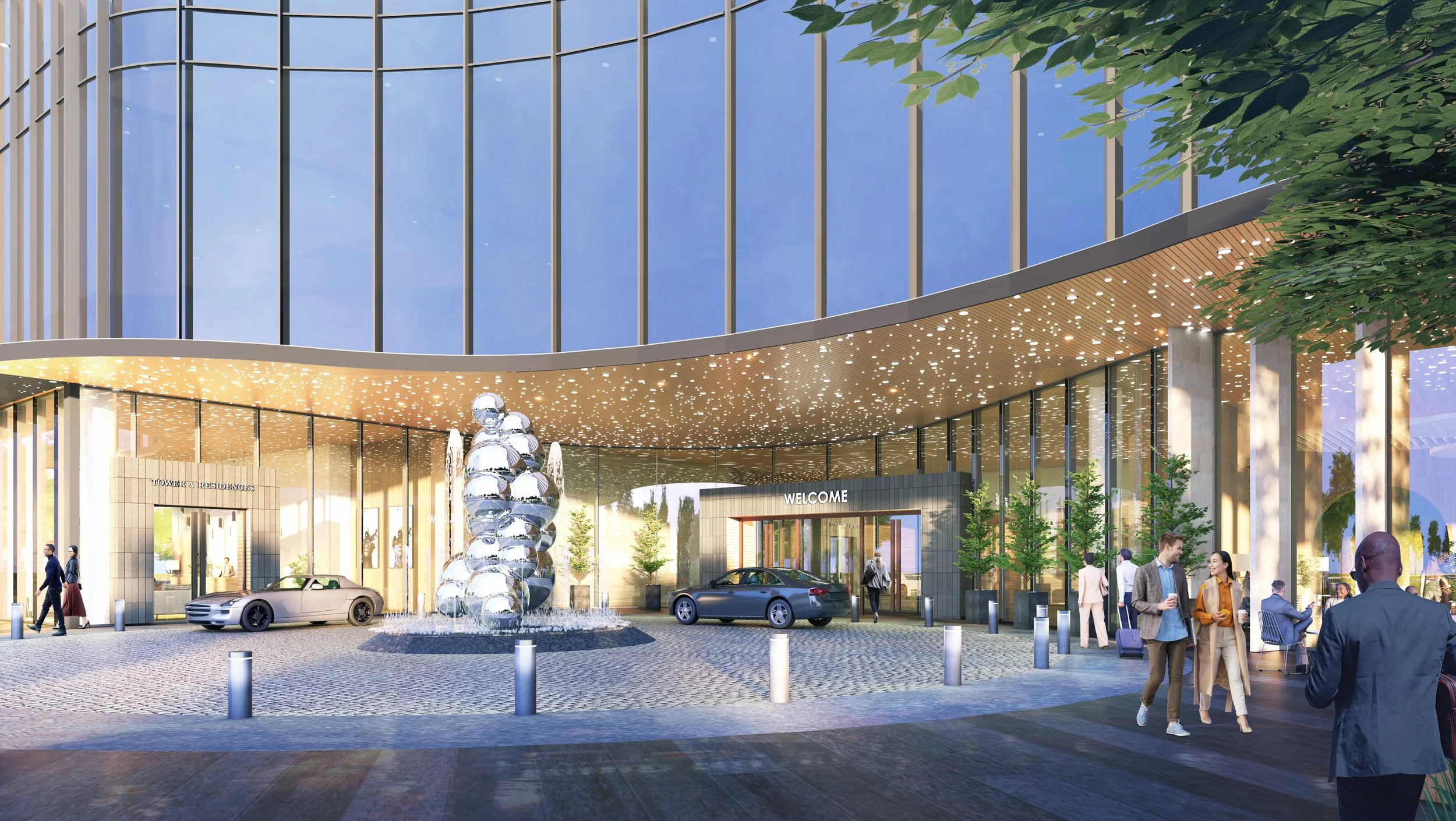The hotel campus will include two luxury anchor hotels with a unified multi-storey podium featuring restaurants, retail, and conference spaces in support of the primary hotel program. Branded residences will be located on upper storeys, along with world-class publicly accessible amenities like observation decks, bars, restaurants, sky gardens, and art galleries.